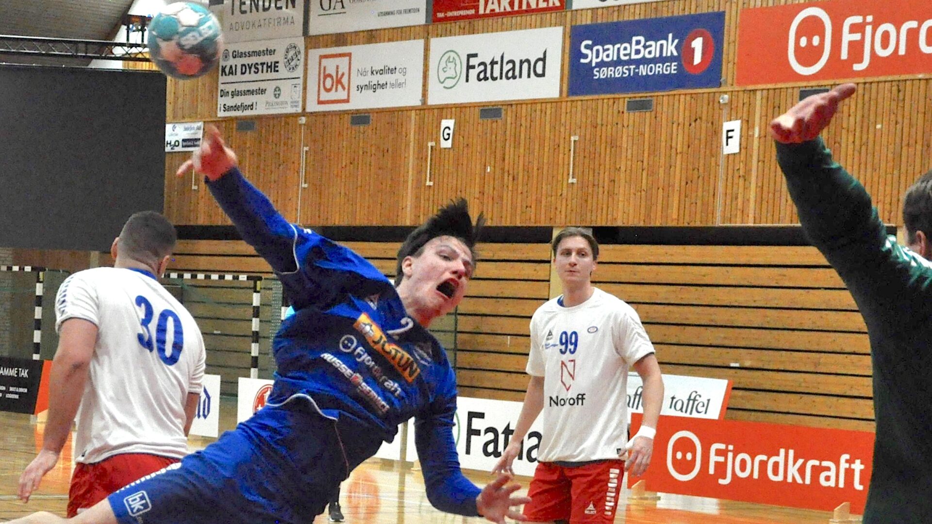 Sandefjords lag: Johan Hedlund Bergqvist (57 %), Sander Akerlie (33 %), Martin Lundquist, Erlend Johnsen 6. Trym Bilov-Olsen 4, Fredrik Engelstad 1, Kristoffer Norgren Olsen 5 (2), Sander Wennberg Linderud 2, Magnus Galabuzi Segujja 1, Mikkel Ertsås 1, Lasse Døsen 3, Anders Jansrud 2, Jakob Petrzela 1, Espen Røhmer 2, Victor Iversen 1, Tarik Repesa.