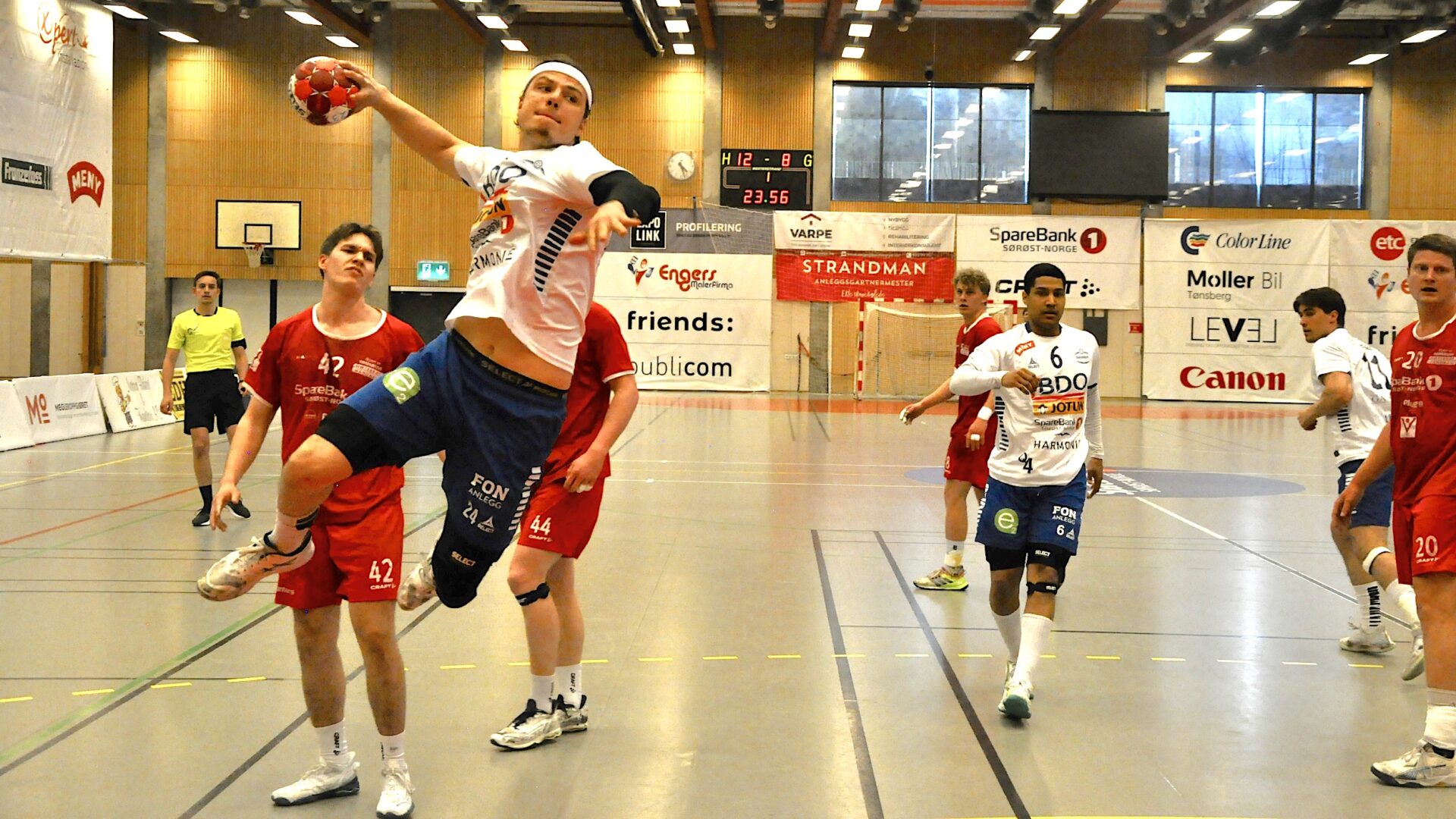 Sandefjord: Johan Bergqvist (37 %), Sander Akerlie (14 %), Endre Svåsand 1, Espen Røhmer 1, Magnus Galabuzi Segujja, Sander Ree-Lindstad, Johannes Gurrich 4, Sander Wennberg Linderud 9, Andreas Oustorp 1 (1), Martin Lundquist 1, Noah Allerød 1, Lasse Døsen, Erlend Strand 4, Anders Jansrud, Jakub Petrzela 4, Tarik Repesa 3.
