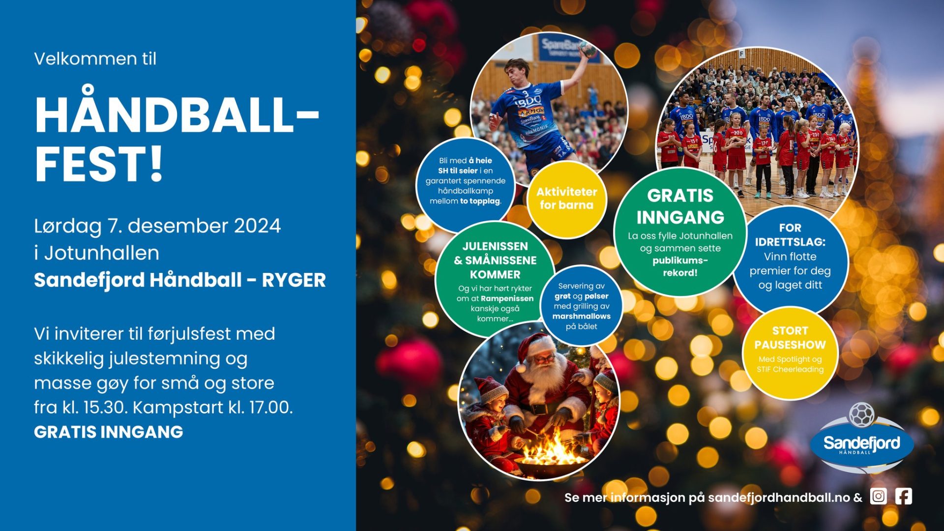 Lørdag 7. desember bir det håndballfest i Jotunhallen. Vi håper så mange som mulig kommer på besøk!