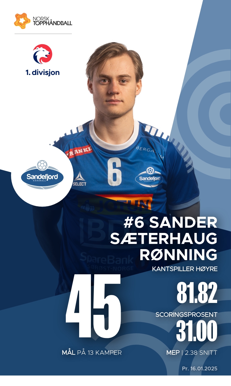 Sandefjord tar imot Melhus i 1. divisjon for menn søndag 19. januar klokken 16:30 i Jotunhallen. En viktig kamp både Sandefjord og Melhus, som begge forventes å være med i kampen om opprykk til REMA1000-ligaen.