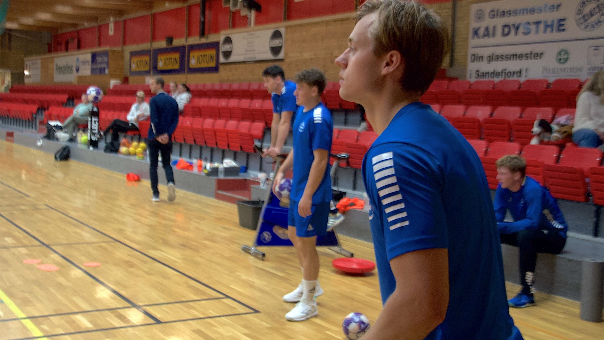 I dag fikk han nytt påfyll av Sandefjordhåndball; det spillet vi skal levere i årets REMA1000-liga og som forhåpentligvis er godt nok til at vi får poeng tilbake. Det var i hvert fall trøkk i hallen både tirsdag og i dag, Anført av trenerduoen Marinko Kurtovic og Fredrik Svendsen gjennomførte de flere repetisjoner, mer terping, på ting de kan, men som likevel ikke alltid sitter som ønsket. Dessuten ga Kurtovic hver og en av spillerne noen formanende ord i forhold til serieåpningen lørdag: Har du en god nok uttellingsprosent? Klarer du å unngå tekniske feil?