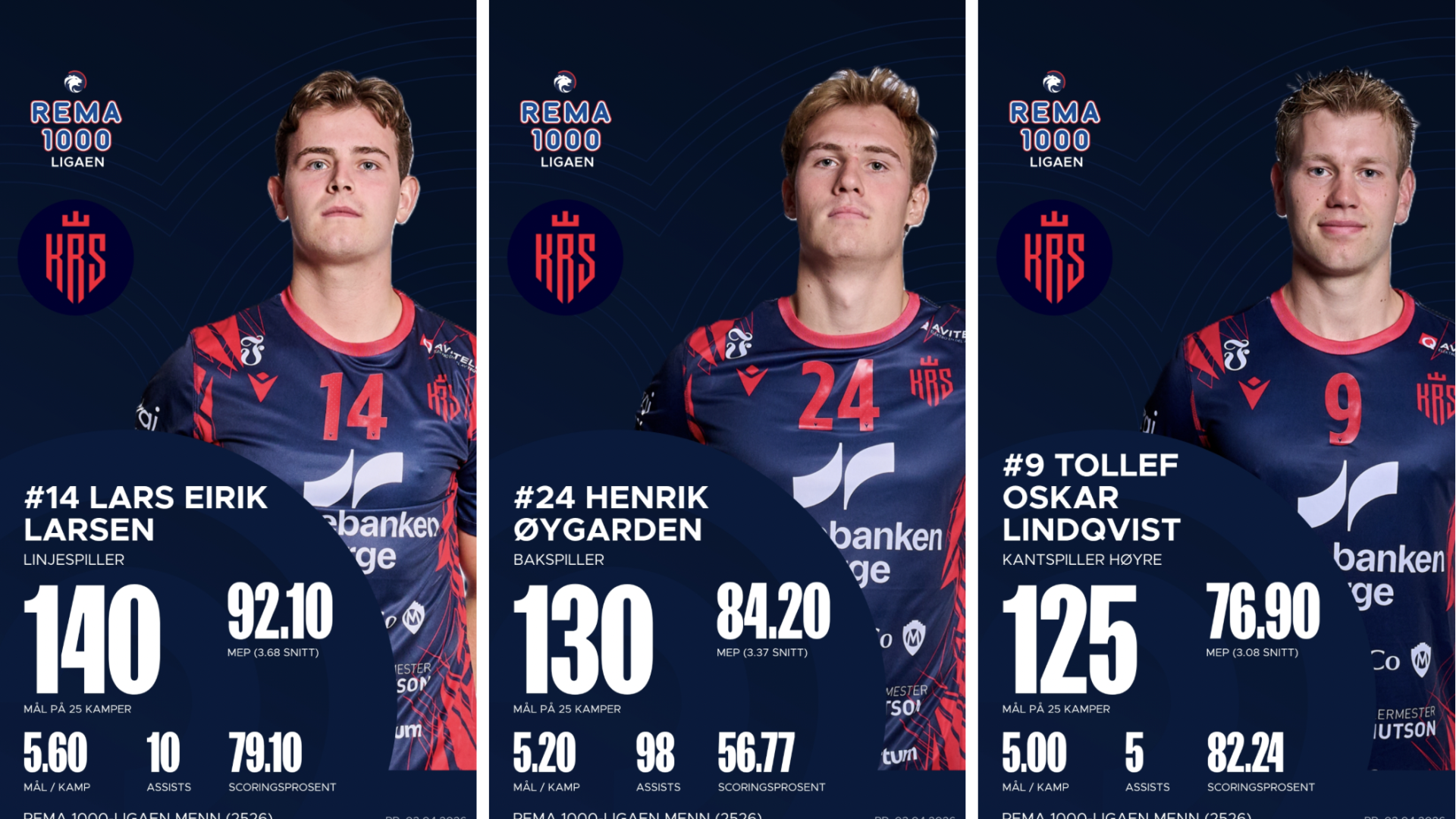 Bak de mange gode resultatene ligger først og fremst et sterkt angrepsspill. Trioen Lars Erik Larsen (strek – 140 mål), Henrik Øygarden (venstre bakspiller – 130) og Tollef Lindqvist (høyrekant – 125) har skåret over halvparten av Kristiansands totalt 776 mål, et antall som for øvrig er det sjette beste i REMA1000-ligaen, bare slått av Elverum (835), Runar (833), Kolstad (818), Bergen (802) og Drammen (782). Sandefjord står til sammenligning med 710 mål.